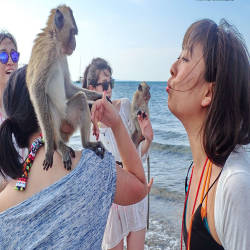 Monkey numbers have spiked over the years due to an increase in Tourism leading to food shortages in the low season. The Royal Thai Navy had to provide food to sustain the monkeys during these times. With the help of visitors, the Tourism Authority of Thailand continues to include this wonderful island on tours that can assist in sustaining this growing and thriving monkey community. If you want to feed them yourself, bananas and nuts are fine, but watermelon is their favorite. It is important to note that, although the inhabitants of Monkey Island Pattaya are generally very friendly and approachable and will even climb on top of you if you are carrying food, they are still wild and can become ferocious.