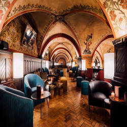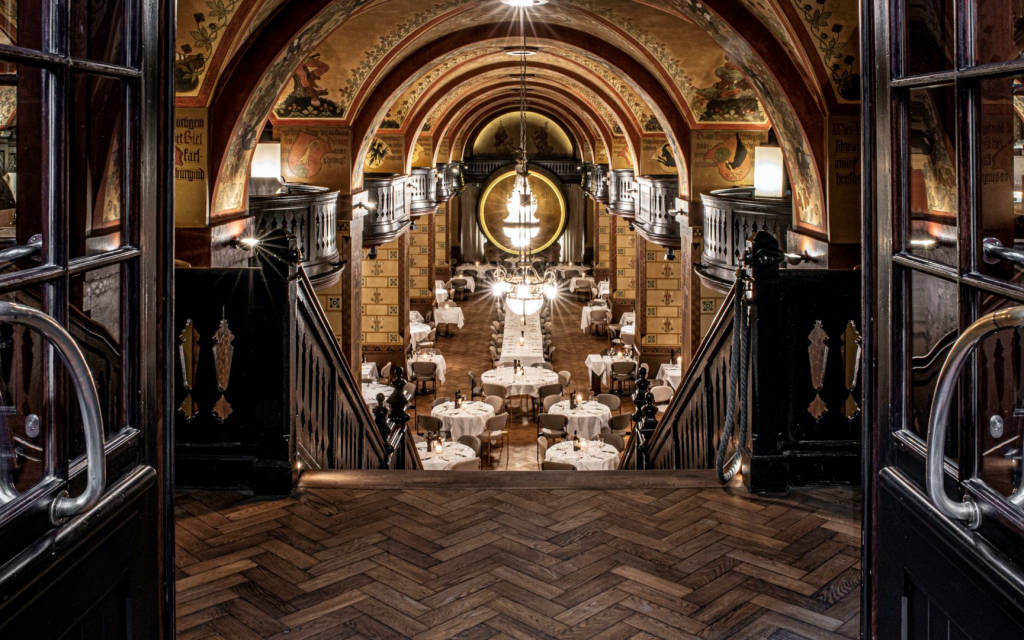 The size of the cellar is impressive. Originally built to a design by Hans Jakob Dünz, this baroque building restaurant attracts guests with its culinary offerings and distinctive atmosphere. The nave and two aisles are reminiscent of church architecture and lend Kornhauskeller a sacred atmosphere. The unique balance between the walls, the repetition of patterns, the lights stretching from each door, the artistic frescoes and the modern furniture make every visit to Kornhauskeller a memorable experience.
