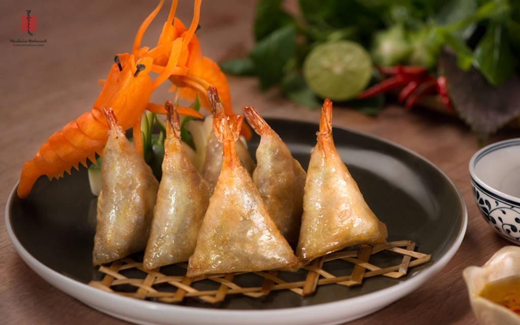 Coming to Mandarine restaurant is coming to a culinary journey across the country from Duck with tangerine sauce, Pan-fried shrimp rolls, Mandarine spring rolls, Grilled chicken with cinnamon, Steamed fish with mushrooms to Cha Ca Doan or Lobster with red sauce sauce ,... In which the most attractive and inviting to diners is the Mandarine-style Duck. The carefully deboned piece of duck is as soft as velvet, impregnated with spices combined with the restaurant's signature sauce, which is smooth, sour, sweet and mild, which is one of the aftertaste that makes a strong impression on Saigon diners. To bring out the most authentic Vietnamese flavors, Mandarine's chefs always prepare dishes from fresh and high-quality ingredients. In Mandarine, it is not difficult to realize the harmonious combination of Hue flavors with Ha Thanh cuisine. Like the steamed rice paper with lotus leaves, the typical dishes of Trang An people are delicately steamed, carrying the fragrance of lotus leaves, the symbol of the Royal Palace, always bringing people to enjoy through many levels of emotions. difference. Or the Palace style steamed cod, Shrimp and meat salad, Lotus salad with beef, ... owning the unique flavor of Mandarine also leaves many different impressions. Vietnamese cuisine uses a harmonious blend of spices and herbs, which is also evident in Mandarine dishes. If Cinnamon Grilled Chicken, Cinnamon Grilled Ribs impress all the senses from the eye-catching golden brown color to the pleasant, gentle aroma of cinnamon; The lemongrass baguette has a characteristic aroma of tropical cuisine, while the grilled fish with lemon leaves invites the sense of smell because of the unique combination of juicy fish meat and fragrant lemon leaves. Each dish has its own distinctive aftertaste and aroma, attracting diners according to its own imprint. Come to Mandarine and enjoy, to understand why this is one of the Vietnamese culinary addresses that can be proud to introduce to diners around the world. Don't forget to order yourself some inviting desserts such as Burnt Banana, Queen Tea, etc. of Mandarine restaurant!