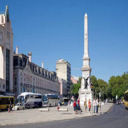 Restauradores Square, a central hub in Lisbon, stands as a symbol of resilience and freedom. Bordered by grand buildings and historic landmarks, the square pays homage to Portugal's liberation from Spanish rule in the 17th century. At its center, an imposing obelisk commemorates the restoration of independence, surrounded by intricate tilework and lush gardens.