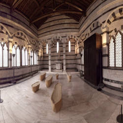 The interior consists of a single room, with painted ceilings. The ceiling was painted during the 19th century, when the church was rebuilt. If you want to experience one of the most amazing sculptural masterpieces, designed in Gothic style, then Madonna of the Rose is what you are looking for. It is located in the center of the church and was designed by Andrea and Nino Pisano.