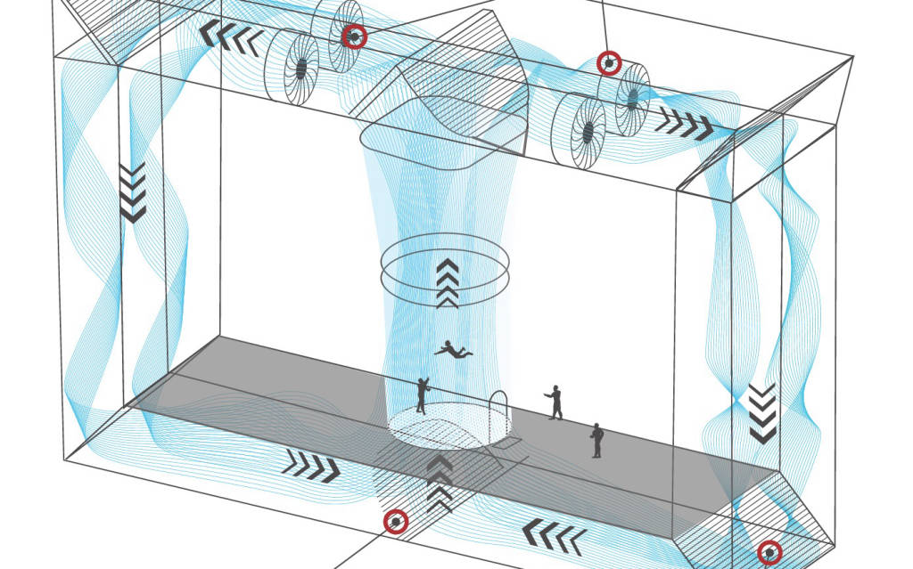 The technology that makes travelers fly are wind tunnels in which air is moved in a precise and sophisticated way. The four propellers inside the tunnel are optimally positioned to ensure a quality flow that allows the air to go around a simple and efficient loop. Airflow is narrowed below the flight deck for increased speed and smooth airflow for maximum enjoyment.