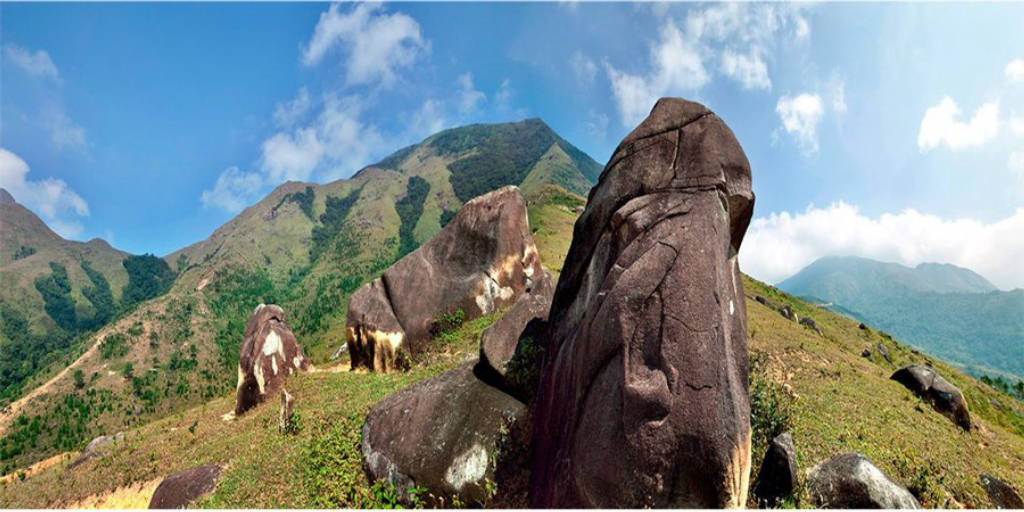 On clear days, from an altitude of 1,429 meters, you can see a very beautiful scenery when looking to the east, which is Hai Ha district, Dam Ha far away from the Gulf of Tonkin. Looking to the west is the high mountain range between the border of Vietnam - China, to the south is a town of Binh Lieu, far away is Tien Yen district, towards the north you can see Khe Van waterfall, beyond the Goryeo Mountains. Only standing here can you see all the natural beauty that nature bestows on Binh Lieu. If you have the opportunity to come to Binh Lieu, try once to experience conquering the mountain known as "The Roof of Quang Ninh".