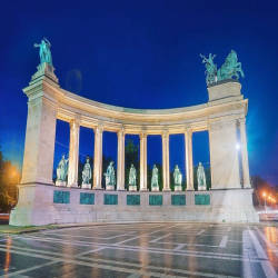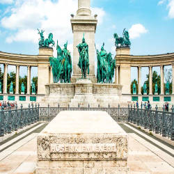 Hősök tere is the largest and most iconic square in Budapest. The Monument to the Millenary (Ezerévesemlékm), a 36m-high pillar with a golden statue of the Archangel Gabriel, holding the Hungarian crown and a cross at the top is the focus of the square. The memorial is dedicated to an outstanding Hungarian statesman, kings and heroes who tried to make Hungary a better place and a prosperous independent nation.