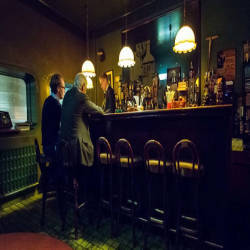 Rum Trader - the name speaks for itself in part, specializing in rum based drinks with a bartender cum owner very knowledgeable about most rums and how to make them. Some of the finest gin are also available here. Everything is supervised by the owner Scholl, who is always dressed in suits and bows and chats intimately with regular customers or those dressed in his Joyce style.