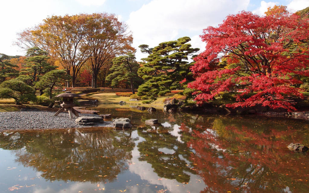 09:00 - Koishikawa Korakuen Park This is a beautiful Japanese garden in central Tokyo and is considered one of the best places to see autumn leaves. The red and crimson maple trees contrast brilliantly with the green pines creating beautiful angles. What's more, these and reflections are beautiful in the large central pond.