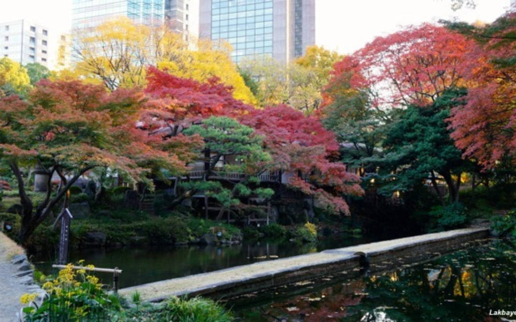 14:30 - Hamarikyu Garden After a leisurely lunch, make your way to Hamarikyu Garden. This is another Japanese garden set among the tall skyscrapers and office buildings of Shimbashi and Shiodome. Although not considered one of the main autumn leaf viewing spots in Tokyo, there are still very beautiful foliage here. Plus, the view of Tokyo's skyline beyond the seawater pond, including Tokyo Tower in the distance, is quite special.