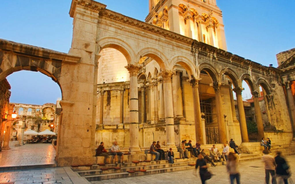 Quảng trường Peristyle ở Split, Croatia, trong Cung điện Diocletian, hòa quyện giữa vẻ hùng vĩ của đế quốc với sức sống hiện đại. Được bao quanh bởi các cột Corinthian, nơi đây tổ chức các sự kiện văn hóa, thể hiện nét quyến rũ vượt thời gian nơi quá khứ gặp hiện tại.