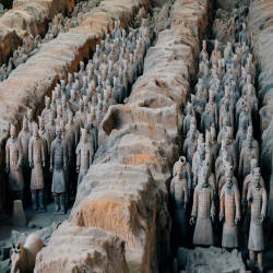 Discovered in 1974 by local farmers digging a well, the Terracotta Army stunned the world with over 8,000 life-sized soldiers, horses, and chariots – all crafted from clay over 2,000 years ago.
