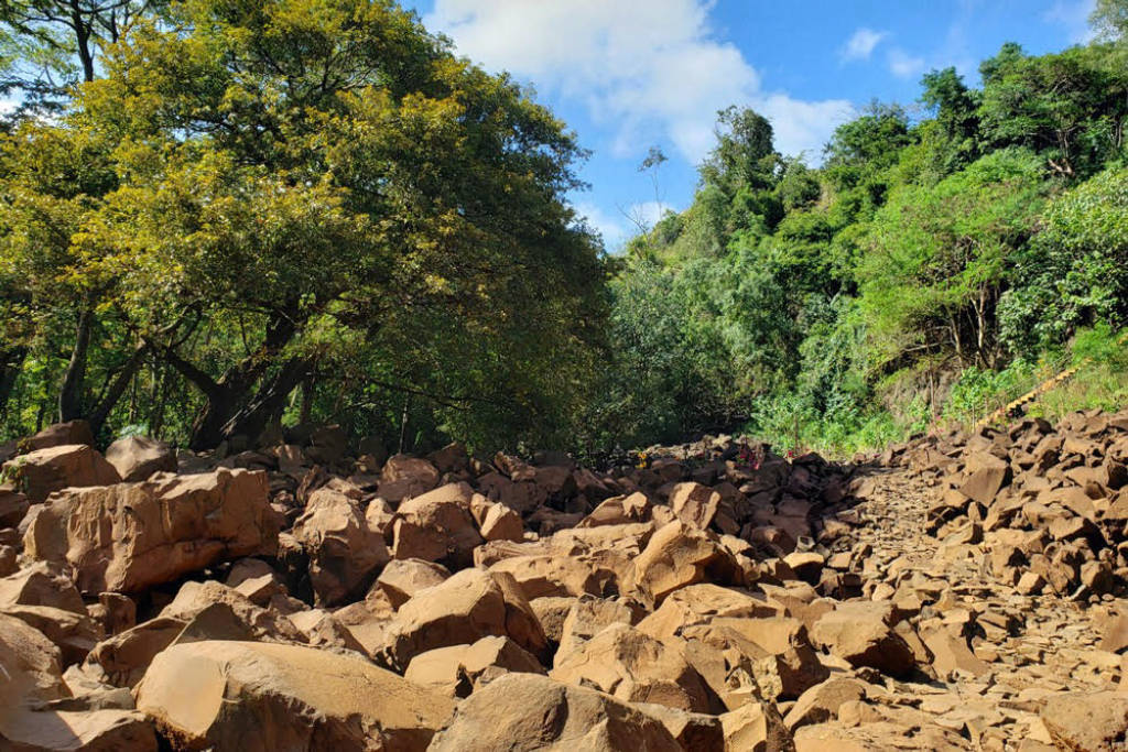 To reach the waterfall, from the center of Pleiku, visitors need to go south along Vo Van Kiet street about 11km to reach Ham Rong junction, from here run straight to Highway 14 about 25km more. When coming to Hung Vuong Street, turn left to Highway 25, continue for another 6km, you will see a sign indicating the entrance to the waterfall. Here, visitors have to go up a rather long slope and cross the rocky beach to reach the foot of the waterfall. Phu Cuong waterfall has a height of about 45m, flowing on the lava bed of a volcano that is millions of years old and now has stopped working. Looking up from below, visitors will feel the waterfall as a prominent white silk strip on the blue background of the sky and clouds, the flowers and plants surrounding the waterfall's flow as if adding a poetic and romantic scene. At the foot of the waterfall are countless black and gray stone blocks with diverse shapes stacked on top of each other. There are times when suddenly, the waterfall area appears brilliant rainbow lights, making the beauty of the waterfall even more shimmering and fanciful. In the rainy season (around May - October) is the season when the waterfall "reveals" its most perfect beauty. The waterfall flows strongly with white foam, and the fast-flowing water makes the natural scenery more magnificent. In the dry season (around November - April next year), the flow of the waterfall seems to become softer and gentler, but the majesty is not that less. The water is as thin as a silk strip, making the waterfall more prominent and poetic in the vast space of the mountains and forests.