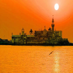 The Haji Ali complex with the mausoleum of the Muslim saint Pir Haji Ali Shah Bukhari and a Haji Ali Mosque is a major tourist attraction of Mumbai.