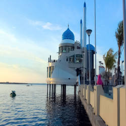 The structure has white domes and minarets reminiscent of Mughal architecture and is a popular pilgrimage and tourist site enjoyed by both Muslims and non-Muslims. Adjacent to the Mosque is a small marble minaret 25m high. Both the Mosque and minaret are made from pure white solid marble with beautiful mirror carvings and decorations. A belief repeated here is that whoever prays to the holy Pir Haji Ali Shah Bukhari will never be disappointed. The project is a quiet and peaceful oasis, floating in the middle of the gentle blue sea, away from the chaos of the mainland.