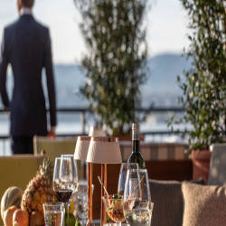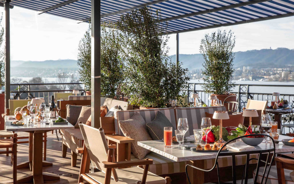 Located on the sixth floor and accessible by a glass elevator in the lobby, La Muña restaurant overlooks the city from its tree-lined roof terrace. The second restaurant of the hotel La Réserve Eden au Lac Zürich is a treasure that mixes imaginary memories of moments on the lake with vintage decorative objects collected from within the city as well as the whole city, This Japanese fusion restaurant offers a unique 360° view of the historic center, with Lake Zürich and the Alps in the distance.