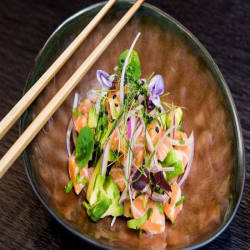 Incredibly fresh and bursting with flavour, La Muña's cuisine combines different textures, raw and marinated elements, acidity and sweetness – based on carefully sourced ingredients, including some rarely found in Europe – expressed through exquisitely prepared and presented delicacies. Each table can choose from Crudo or Caliente dishes, where ceviches are flavored with fresh herbs and spices marinated with beef teriyaki steak with mushroom sauce, or sashimi is served with wakame seriole with ponzu sauce. for a complete culinary experience.