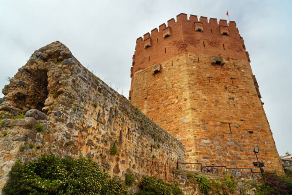 The tower located on İskele Street, next to the cruise ship port, is a tourist attraction because of its distinctive appearance and impressive size. A path just behind the tower leading to the ruins of the Seljuk shipyard (p. Tersane) and the armory (p. Tophane) is also open to the public. If you continue past these structures in the south, you will come to the Esat fortress (p. Esat Burcu), passing the ruins of many buildings and a small Byzantine church.