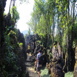 Ham Rong Mountain is located near Sapa stone church. After you visit the church, you will move about 700m to the Ham Rong mountain tourist area. The resort was started in 1996, with a campus of 148ha. You can come here at all times of the year, but if you are a cloud hunter, the best time to come here is around October, when you will be able to see the white clouds floating around the mountain. . Or early February, the right time to see the peach blossoms, plum blossoms in full bloom in the tourist area. To conquer Ham Rong mountain, it will take you about an hour to walk from the foot of the mountain to San May. Orchid garden is the first stop in the journey to conquer Ham Rong mountain, in the garden there are many different species of orchids, perhaps because the weather is suitable, the orchids here grow very well. always big and beautiful. Going a little further, you will come to the garden of the twelve zodiac animals and the peach garden, every spring, hundreds of peach trees bloom in the garden. The next destination is the central flower garden located in the middle of Ham Rong eco-tourism area, with the giant Sa Pa words made of outstanding flowers attracting tourists to take pictures, there are many flowers grown here. especially in October-November you will see daisies and buckwheat flowers blooming. Continuing the journey to reach the top of Ham Rong mountain, you have to go through the heaven gate area with narrow roads, flanked by rocky cliffs, many sections just enough for one person to pass. The last point is San May, the highest place you can walk to. Standing from here you can see the whole town of Sa Pa below, feel the majesty of the mountains in the distance. When you conquer the mountain, you should prepare comfortable shoes for walking, along the way there will be a number of shops that rent ethnic costumes for you to take pictures.