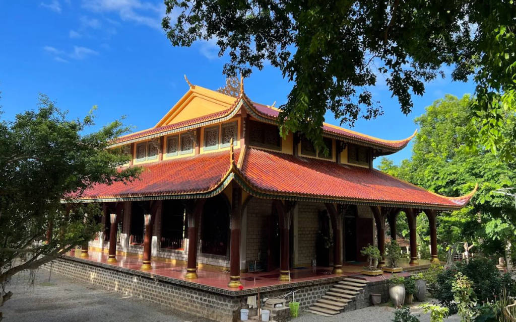 The monastery follows the characteristic architectural style of the Truc Lam Zen school, featuring dark brown tiled roofs, sturdy wooden pillars, and maximally open spaces. The main hall is dignified without extravagance, emphasizing stillness so practitioners can easily enter a meditative state. The minimalist arrangement removes material barriers, leaving only sincerity between worshippers and the Buddha.