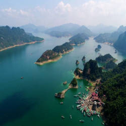 Thung Nai, Hoa Binh – often referred to as “Halong Bay on land” amid the mountains and forests of Northwestern Vietnam. This area is hidden in serene beauty, where green mountains reflect on the clear water, creating a poetic landscape unmatched by any other.