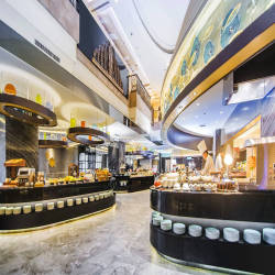 Ambassador Hotel Kaohsiung has 5 restaurants, all with beautiful views and delicious dishes. Located next to the hotel's swimming pool is iRiver Steak Seafood Buffet with an extensive menu of classic European, Thai, American and Cantonese seafood dishes. The Sichuan restaurant on the 20th floor serves traditional dishes such as roast duck and kung pao crab legs, with views of Kaohsiung Harbor and the Love River.