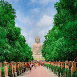 Buddha seated on a lotus in a meditative posture, was inaugurated and consecrated on 18 November 1989, a ceremony attended by the 14th Dalai Lama, who blessed the place. The statue is a symbol of Bodh Gaya and attracts pilgrims from all over the world. It is said that the statue took seven years to be built by V. Ganapati Sthapati inspired by the slogan “Bringing the rays of the Buddha to the Whole World” and around 120,000 masons participated in its construction. . The base stone of the statue, which was placed next to the Mahabodhi Temple in 1982, is made of red granite and blocks of sandstone.