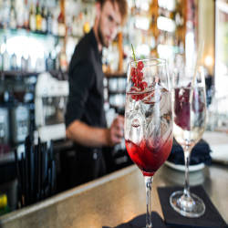Connected to the Volkshaus restaurant, the Volkshaus bar also uses only fresh ingredients from the morning local markets and from the surrounding area. The spacious bar is the place to be any time of day. Here, women after a day of going to the market often come here to sip a cup of coffee with milk, and the night owls drink black coffee, the neighborhood guys often come here to drink beer and chat and the stars in the world. People drink herbal tea before the show.
