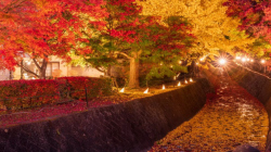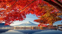Admire Momiji Kairo - " Maple Leaf Tunnel" on the shore of Lake Kawaguchiko, see the white peak of Mount Fuji standing out among the bright red maple leaves.