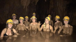 Once you land, gear up with safety equipment and headlamp to begin your true Dark Cave expedition. Walk, climb, and swim through the underground river as you venture into total darkness. Guided only by your own light, marvel at the mysterious rock formations and stalactites that tell the ancient story of the Earth's creation.
