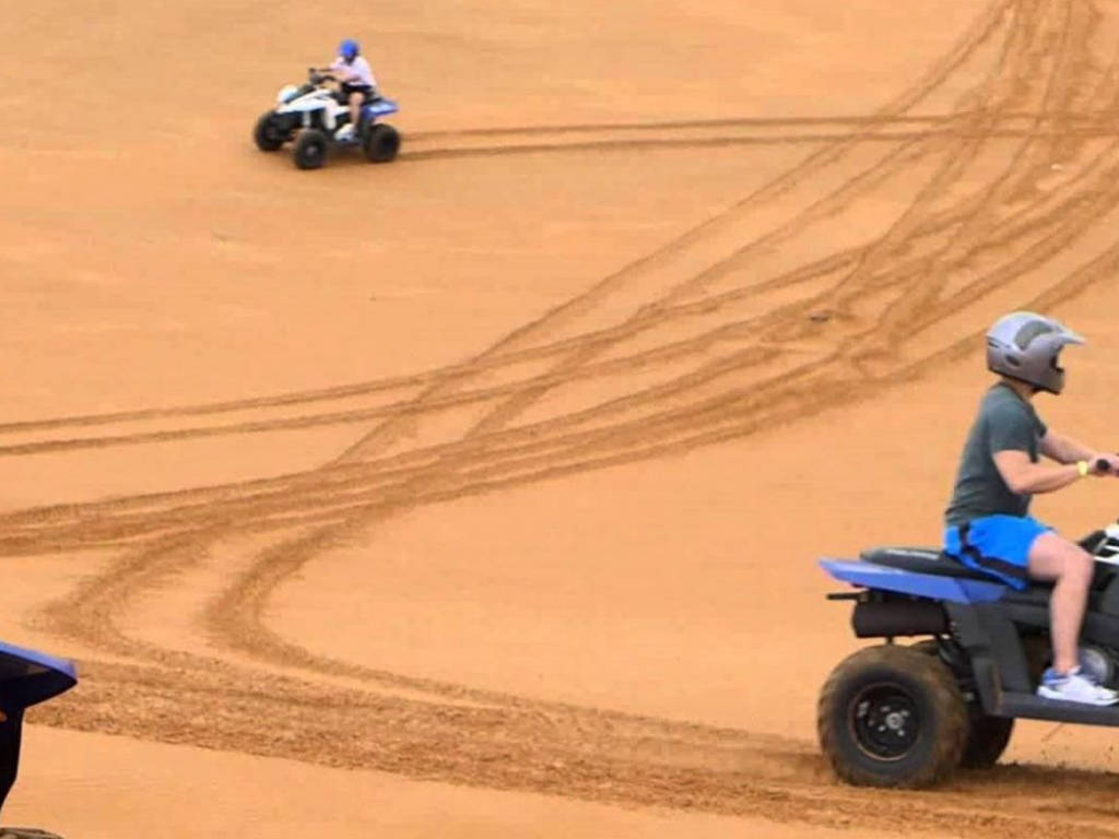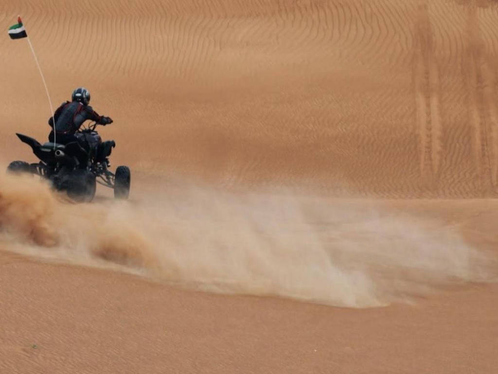 After being briefed on the rules of off-road driving and issued with safety gear you are ready to take control of your own automatic quad bike. Feel the adrenaline rush as your guide leads you up and down the challenging sand dunes. Stop for a breather and soft refreshments before you set off again. Bashing the dunes by yourself in the desert will give you an unlimited adventure experience which is unforgettable. Upon finishing up the experience we will be dropping you back to your hotel in Dubai.