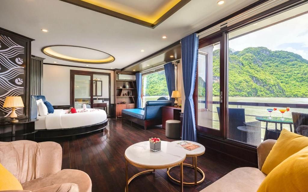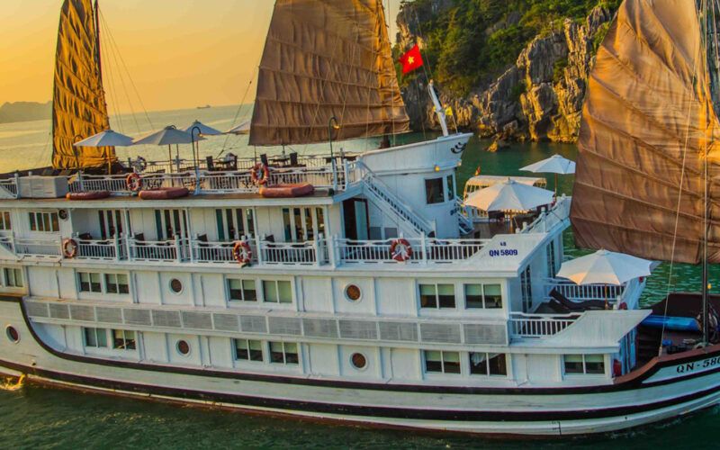 This elite 5-star cruise journey takes you into the heart of Lan Ha Bay, a natural wonder featuring thousands of unique limestone towers. Experience world-class luxury, participate in kayaking at the scenic Tra Bau area, and visit the historic Quan Y Cave on Cat Ba Island. The trip highlights Vietnamese cultural beauty through traditional Ao Dai shows, bamboo dancing, and exquisite 5-star cuisine under the starry sky of the heritage bay.