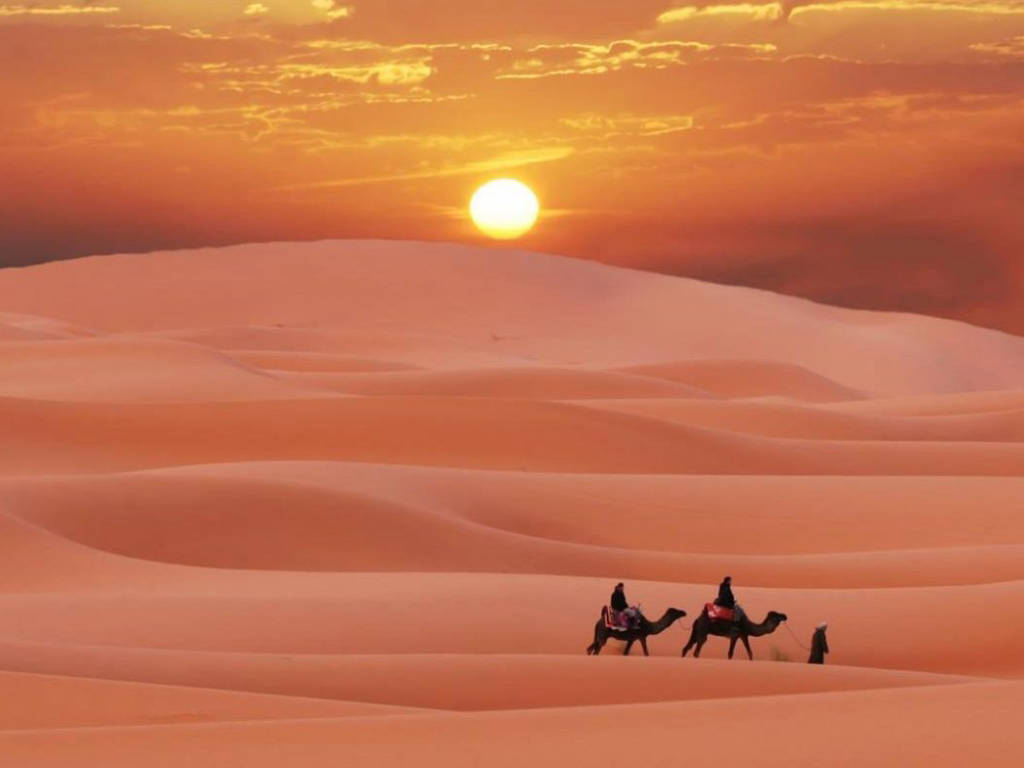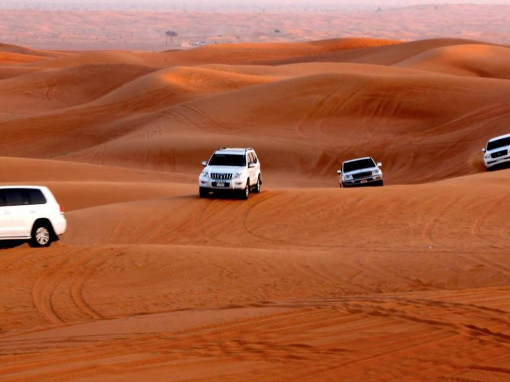 A journey to the Arabian Desert in the morning, Experience dune bashing, camel riding and sandboarding experience over the dunes