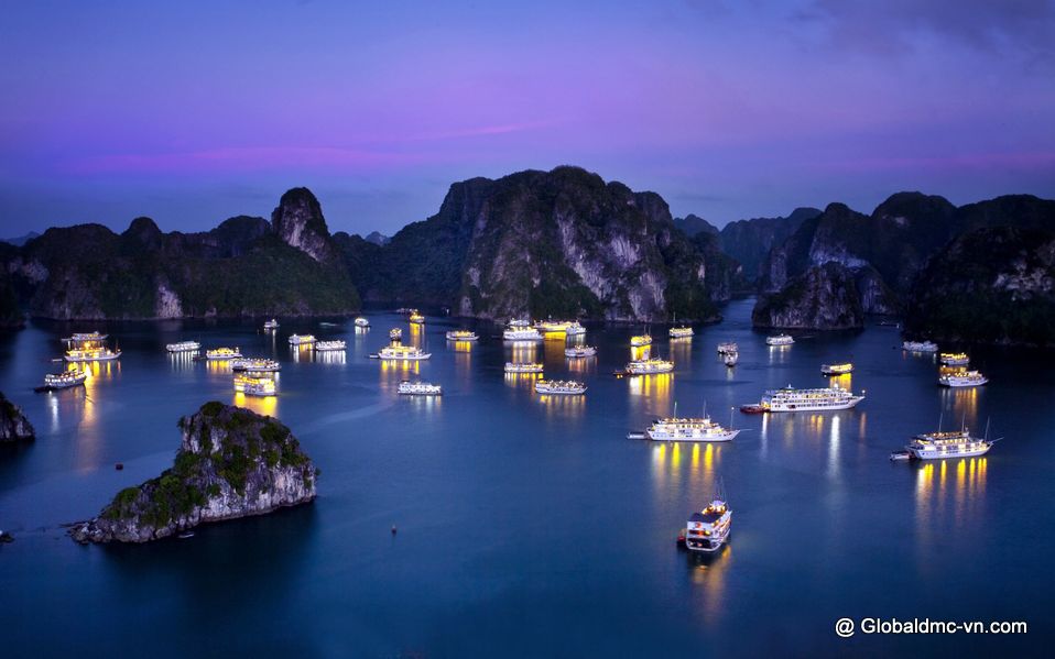 cruise, watch the magnificent sunset over the Gulf of Tonkin. Onboard, you can