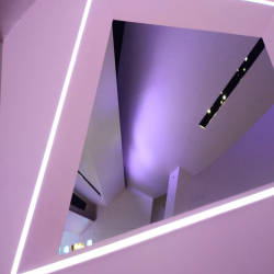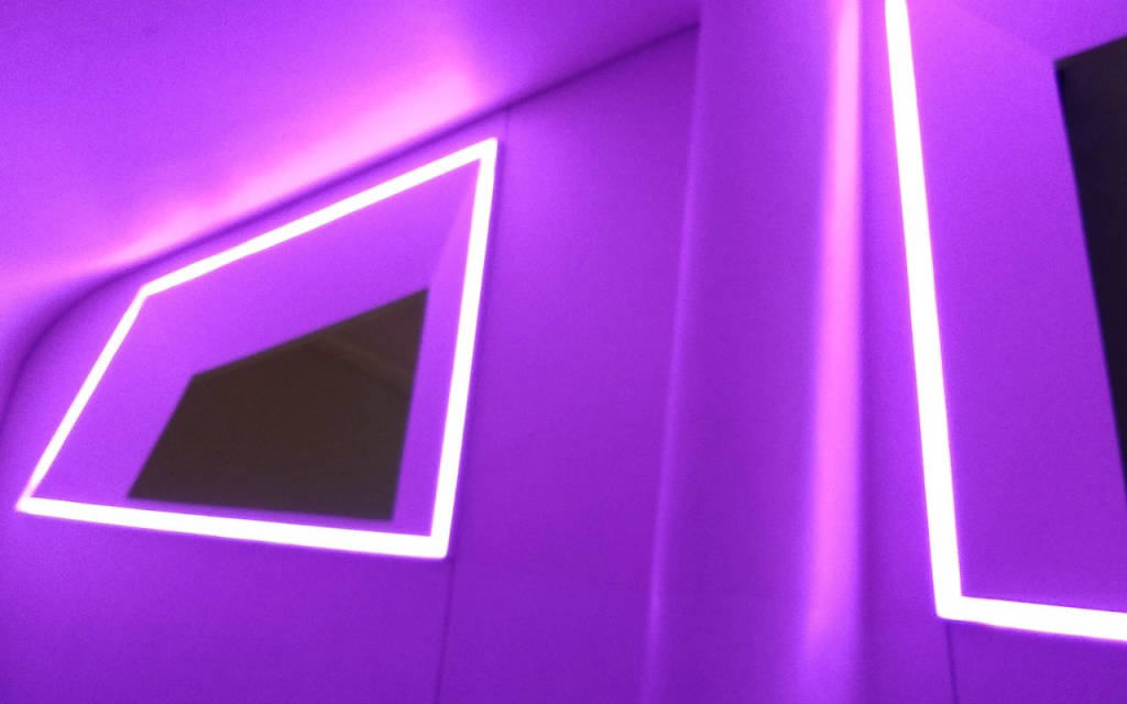After checking in, visitors are escorted to the 4th floor in the elevator, asked to wear shoes to keep dirt out of the building's all-white floor, and given a summary of how the experience will unfold. Then, one by one, they were invited to climb the stairs and begin their tour. Akhob is designed with two rooms with synchronized retinal lighting and highly pigmented light fields, providing near-psychedelic depth perception to visitors. The effect is created to give your eyes a soft, soothing watery with the most vibrant colors imaginable. It changes rapidly from one color to another on a cycle that lasts for 24 minutes. Sometimes, the exact combination of colors makes it nearly impossible for a visitor to find the door he or she has just entered.