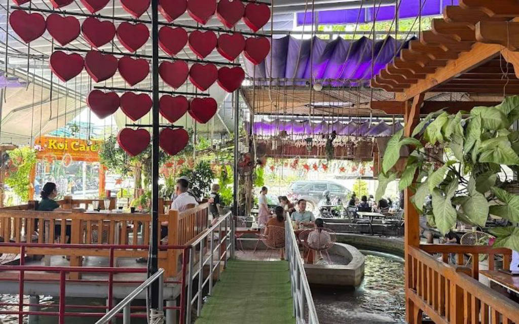 Nằm trong khu làng đại học Bình Thọ yên tĩnh, Koilands Coffee gây ấn tượng mạnh bởi diện tích rộng lớn và thiết kế hồ cá bao quanh các lối đi. Điểm độc đáo nhất ở đây là những ô bàn ngồi được thiết kế thấp hơn mặt nước hoặc nằm lọt thỏm giữa lòng hồ. Cảm giác vừa nhâm nhi cafe, vừa có thể chạm tay vào những chú cá Koi dạn dĩ, sặc sỡ bơi lội ngay sát cạnh là trải nghiệm "đắt giá" nhất mà quán mang lại. Không gian mở với nhiều cây xanh giúp quán luôn mát mẻ, tách biệt hẳn với cái nắng nóng của Sài Gòn