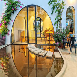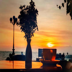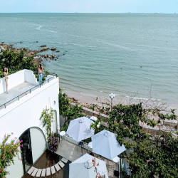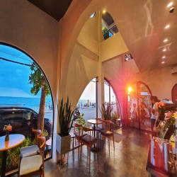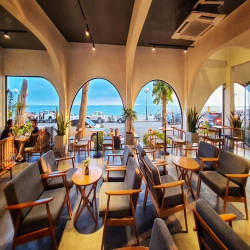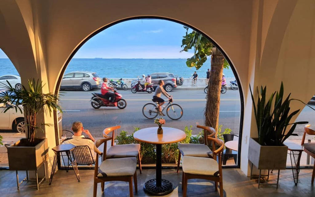 Khác với các quán khác, bạn sẽ được ngồi trong máy điều hòa nhâm nhi những ly nước ngắm nhìn những con tàu thấp thoáng phía xa, cảm nhận những phút giây thư giãn cùng tiếng nhạc ru rương. Ngoài khu vực trong nhà, quán vẫn bố trí một số bàn phía ngoài để cho các du khách có thể chụp hình, hay ngắm cảnh hoàng hôn dần buông xuống mặt biển.