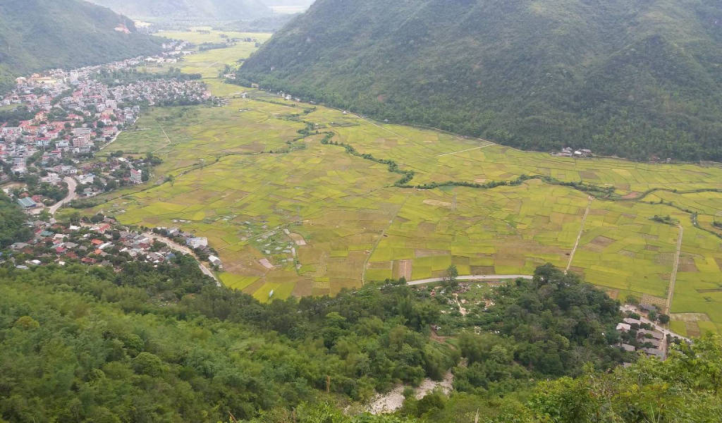 Đi thêm một đoạn nữa bạn sẽ gặp Cột cờ đèo Thung Khe còn gọi là cột cờ Mai Châu hay điểm ngắm cảnh Mai Châu, đây có lẽ là điểm nhấn của toàn bộ ngọn đèo. Từ đây, bạn có một tầm nhìn tuyệt vời ra thung lũng Mai Châu, rất nhiều ảnh về Mai Châu đã được du khách cũng như các nhiếp ảnh chụp từ vị trí này. Bạn có thể nghỉ ngơi tại đây và ngắm nhìn quang cảnh tuyệt đẹp của thung lũng.