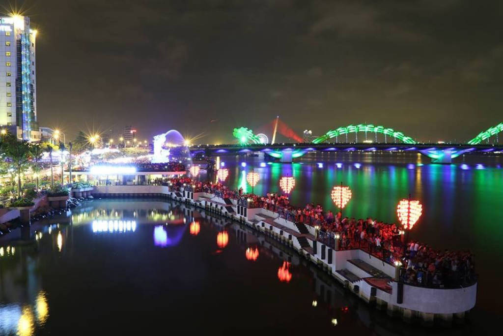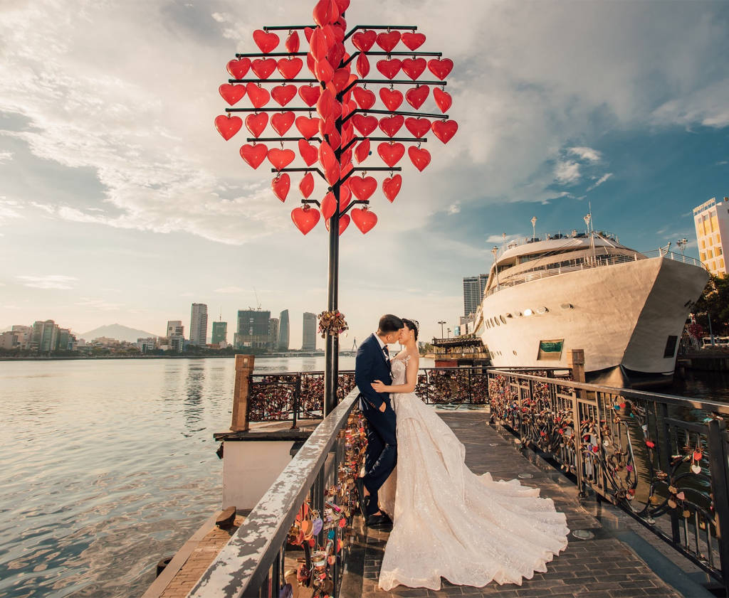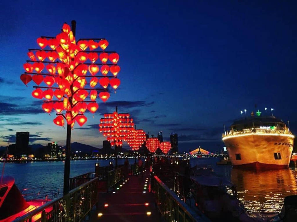 Trước khi đến với Cầu tình yêu, bạn sẽ có cơ hội check-in tượng cá chép hóa rồng ở ngay dưới chân cầu. Hình ảnh cá chép hóa rồng xuất hiện trong các câu chuyện cổ dân gian của nước ta. Nó tượng trưng cho sự kiên trì, bền bỉ, không bao giờ khuất phục của dân tộc. Với ý nghĩa đó, bức tượng “Cá chép hóa rồng” được người họa sĩ điêu khắc mang vẻ đẹp độc đáo, tạo nên một biểu tượng mới của vùng đất Đà Nẵng. Sau khi check in tại bức tượng này, các du khách sẽ bị ấn tượng bởi những ngọn đèn trái tim xếp theo hàng dọc theo dáng cầu trên bờ sông Hàn. Về đêm, những ngọn đèn càng lung linh và tỏa sáng hơn bao giờ hết. Thứ ánh sáng đỏ rực như những ngọn lửa tình yêu đang rực cháy của tuổi trẻ làm sáng cả một vùng trời. Dọc thành cầu được lắp đầy các ổ khóa tình yêu của các cặp đôi khi đến đây. Họ mong muốn cuộc tình của mình sẽ có kết thúc viên mãn, tựa như những ổ khóa này, sẽ mãi mãi không bao giờ bị tháo rời. Nếu bạn đến Đà Nẵng cùng với người thương thì đây sẽ là địa điểm lý tưởng để bạn có những khoảnh khắc đáng nhớ cho chuyến đi cặp đôi này đấy. Ngoài ra, gần Cầu tình yêu là du thuyền sang trọng, bạn có thể tham quan Cầu tình yêu và kết thúc chuyến đi bằng một buổi tối lãng mạn trên chiếc du thuyền. Vừa thưởng thức những món ăn Việt Nam với cách chế biến ngon, độc đáo của các nhà hàng trên du thuyền, vừa được ngắm nhìn quang cảnh thành phố Đà Nẵng trên sông Hàn, cầu Rồng, cầu Trần Thị Lý, cầu Thuận Phước về đêm, đó chắc chắn sẽ là một buổi tối tuyệt vời và khó quên. Nếu yêu thích Đà Nẵng, bạn đừng bỏ lỡ “Cầu tình yêu”- một địa điểm tham quan thú vị, tình tứ và đầy lãng mạn của thành phố đáng yêu này.