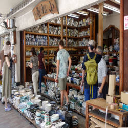 Là một địa điểm yêu thích đối với các đầu bếp chuyên nghiệp và nghiệp dư, Kappabashi Kitchenware Town nằm trong khoảng cách đi bộ đến Đền Sensoji của Asakusa và Công viên Tokyo Metropolitan Ueno. Lối vào trung tâm của tất cả mọi thứ liên quan đến nấu ăn này được bảo vệ bởi một bức tượng đầu bếp khổng lồ,hoàn thành với một chiếc mũ trắng cao chót vót.Con đường chính và các con phố phụ của khu đồ dùng nhà bếp có khoảng 170 cửa hàng, cung cấp mọi thứ từ dao và đồ sơn mài chất lượng cao của Nhật Bản đến bếp lò cao cấp. Hầu hết các cửa hàng đều mở cửa tự do, vì vậy bạn có thể nhận được những ưu đãi lớn về bộ đồ ăn, dụng cụ nhà bếp và nhiều tiện ích nhỏ hữu ích khác mà bạn chưa từng biết mình cần. Hãy nhớ ghé qua các cửa hàng bán đồ ăn mẫu, nơi bạn có thể nhìn thấy các phiên bản nhựa siêu thực của đủ loại món ăn và nguyên liệu. Nam châm sushi và vỏ điện thoại thông minh theo chủ đề thực phẩm là những món quà lưu niệm đặc biệt phổ biến, cũng như rèm noren, cốc sứ và giá đỡ đũa huyền ảo.Ngay cả khi bạn không có tâm trạng mua sắm, Kappabashi cũng đáng ghé thăm để xem các mặt tiền và bảng hiệu được trang trí tỉ mỉ. Bên cạnh người đầu bếp khổng lồ nói trên, bạn sẽ bắt gặp những con dao, máy đánh trứng và tách trà khổng lồ trang trí cho các tòa nhà. Trẻ em sẽ có một thời gian tuyệt vời khi tìm kiếm nhiều bức tượng dễ thương của kappa, một loài nước thần thoại mà từ đó đường phố được đặt tên