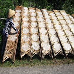 Tuy Loan rice paper craft village is famous for making rice paper and Quang noodles. The processing method to get delicious rice paper must have all five spices: fish sauce, salt, sugar, garlic and sesame. The recipe is preserved the village's own secret so that the rice paper has a unique flavor that is unmatched anywhere else.