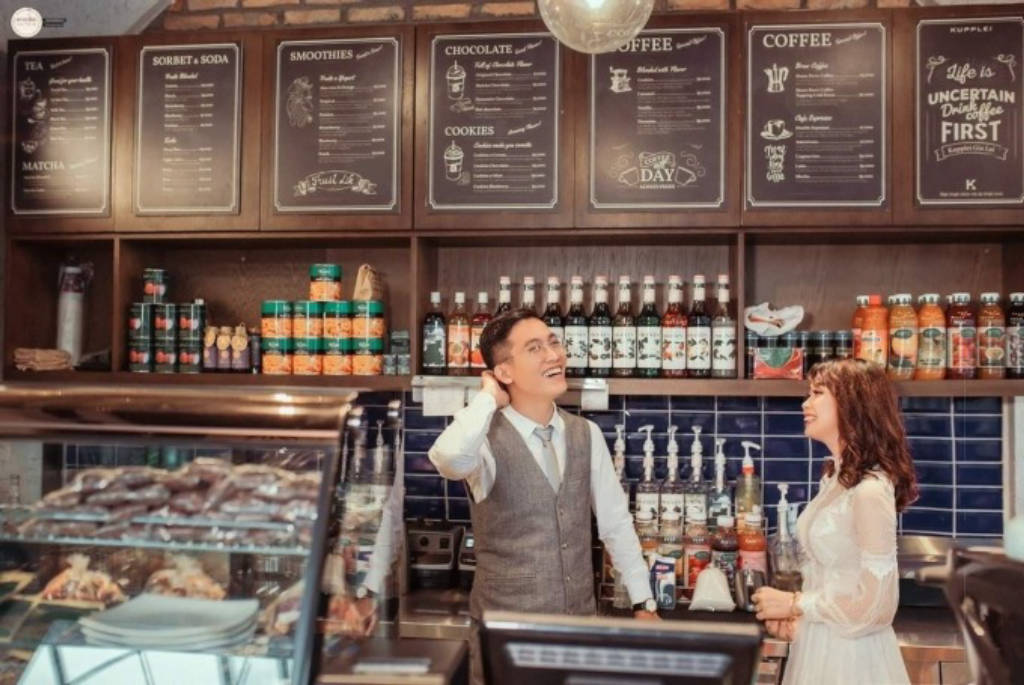 Khi lần đầu bước vào bên trong quán, thực khách sẽ bị ấn tượng bởi lối kiến trúc được thiết kế theo một phong cách rất cổ điển xen lẫn với sự kết hợp pha chút nét đẹp hiện đại. Đây được xem là sự kết hợp khá hoàn hảo từ cái cách phối màu đến những vật dụng được trang trí làm toát lên vẻ đẹp rất sang trọng. Không gian quán có rất nhiều mảng xanh trầm sang chảnh thế nên quán chính là điểm đến của những khách trẻ yêu thích check-in, chụp hình cưới. Tất cả các góc của quán dù trong nhà hay ngoài trời đều mang một vẻ đẹp rất riêng biệt mà khi chụp lên không phải tốn công chỉnh sửa. Bên cạnh đó, thực đơn của quán cũng đa dạng, phong phú. Mỗi món đều có cách trang trí khác nhau, khá bắt mắt và rất ngon mà giá cả cũng rất phải chăng. Tuy nhiên, chỉ có 1 điểm trừ duy nhất khi thực khách đến quán là mô hình tự phục vụ của quán. Thưc khách sẽ không được phục vụ 100% theo yêu cầu mà phải xếp hàng rồi chọn món và sau đó trả tiền trước rồi nhận lại một cái thẻ điện tử, thiết bị rung và phát sáng rồi thì mới được quay lại quầy pha chế để nhận đồ uống.