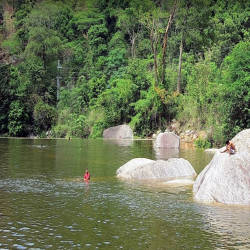 About 55 km from Buon Me Thuot city center, going along provincial road DT 12 visitors will come to the fork in the road to the waterfall. Near the source, Krong Kmar's water flows down the stone steps with white foam, creating a chain of roaring sounds that resonates throughout the primeval forest. Next to the waterfall's water columns, there are many large and flat rocks like a table, which are very suitable for tourists to stop to rest and admire the scenery. Here, visitors who like to explore the mountainous landscape can walk back upstream to find out where the Krong Kmar stream begins. Visitors will be very surprised about a large, clear and tens of meters deep lake located on the high mountains of Chu Yang Sin mountain range. Around the lake is surrounded by rows of pine trees all year round, with music mixed with the melodious singing of many kinds of forest birds. Unlike the waterfall below, it is very quiet and close to nature. This is a very suitable place for tourists who want to find themselves a quiet and poetic scene amidst wild nature.