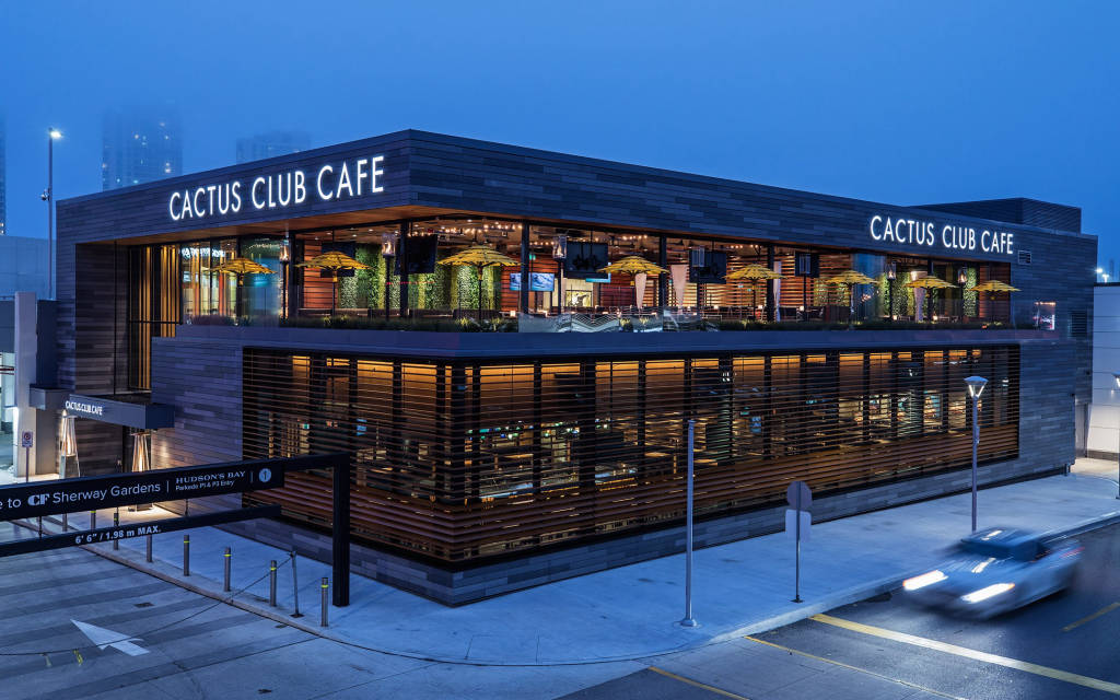Tại Catus Club Cafe, thực khách sẽ được thưởng thức các món ăn mang đẳng cấp thế giới được chế biến bởi những đầu bếp kinh nghiệm như Rob Feenie hay Cory Vitiello. Điều đặc biệt là Catus Club Cafe đa phần sử dụng nguyên liệu địa phương và các đầu bếp thường dựa vào những nguyên liệu này để sáng tạo nên các món ăn mới phù hợp với tiêu chí bền vững, thân thiện với môi trường của nhà hàng.