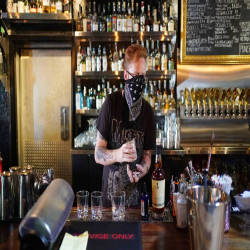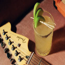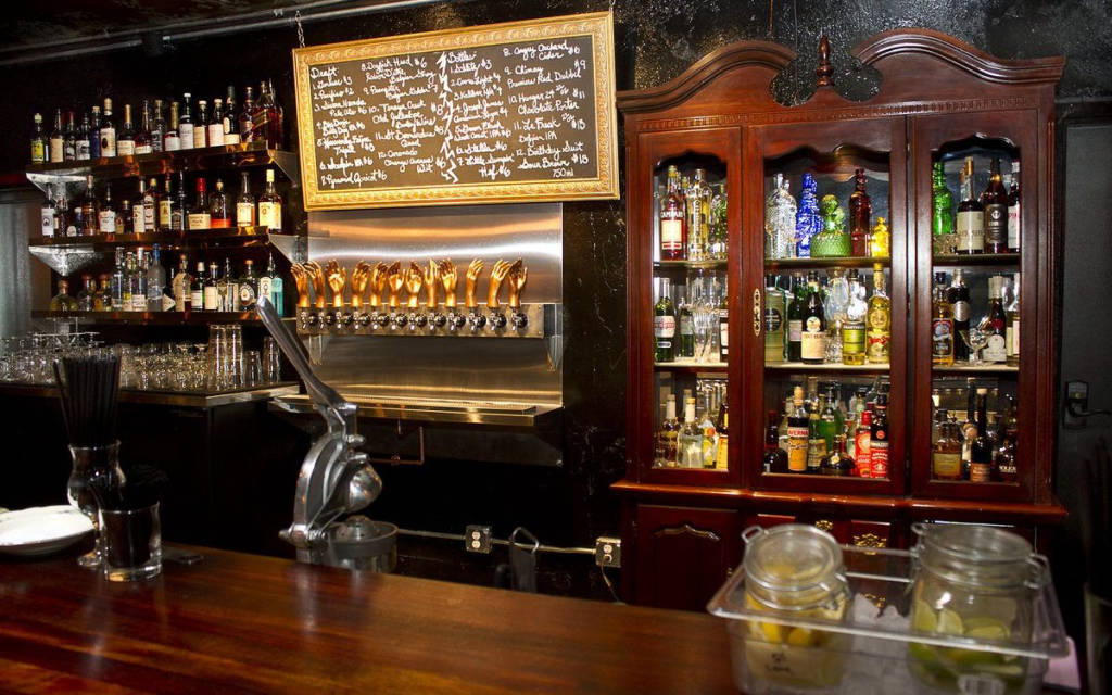 Behind the bar, 12 taps of draft beer with a rotating selection are decorated by mannequin hands that are both decorative and mysterious. Velveteen Rabbit's drink menu is presented in the form of an ever-changing music-themed magazine, featuring photographs by Peter McDeal and Shahab Zargari, visual art by Daniel Ayala, Narble Art and Lauren Ashley, and excerpts from old Colombian radio plays translated into English by Gigi Guizado. The bar offers diners creative, slightly eccentric craft drinks. The cocktails themselves are named after different songs such as the Pictures of You which is a cocktail with ingredients of gin, cucumber, lavender and black pepper or the Miserlou rum cocktail (a song in praise of the music). Dick Dale's tools of the same name) include jalapeño aguardiente and coconut milk.