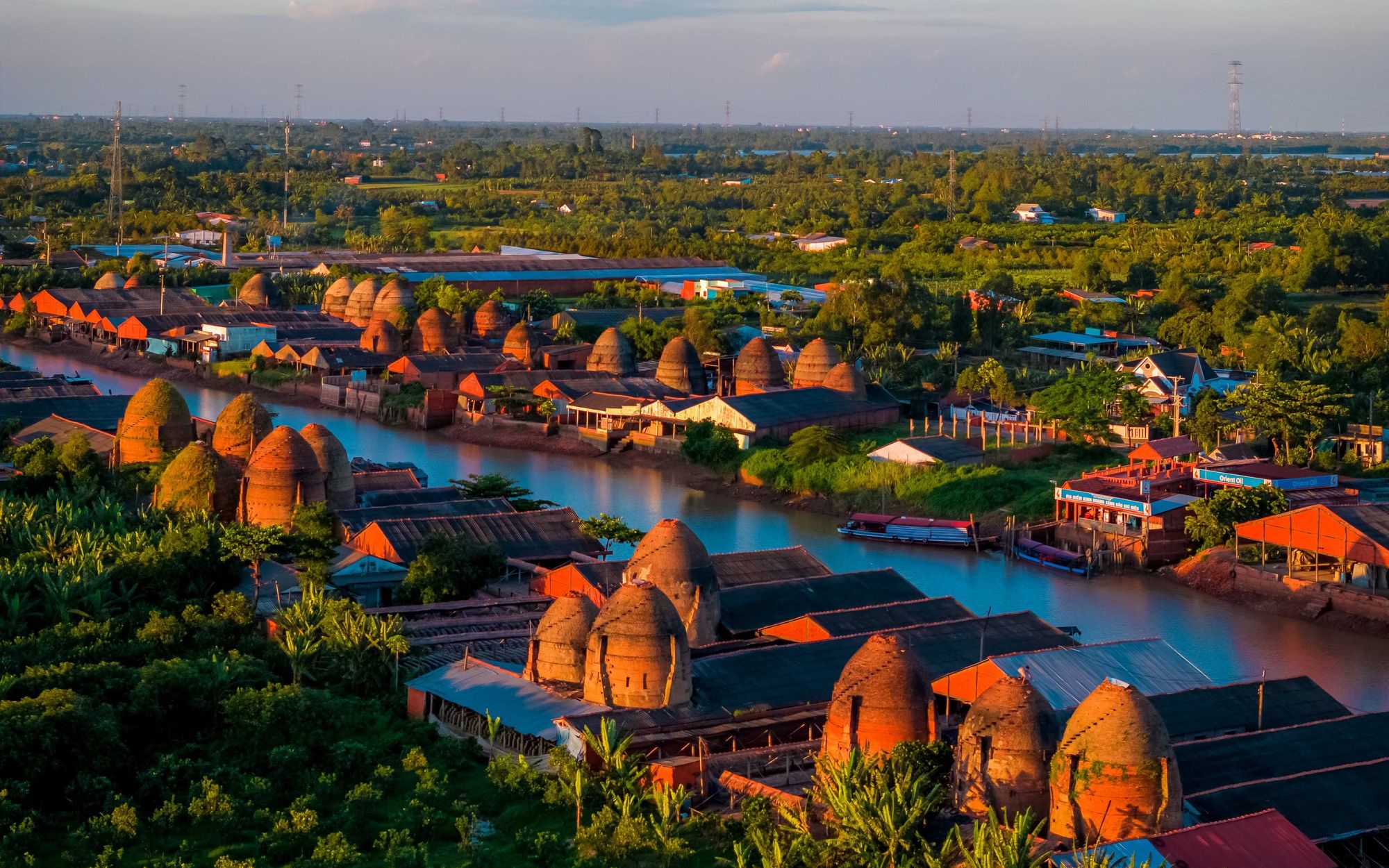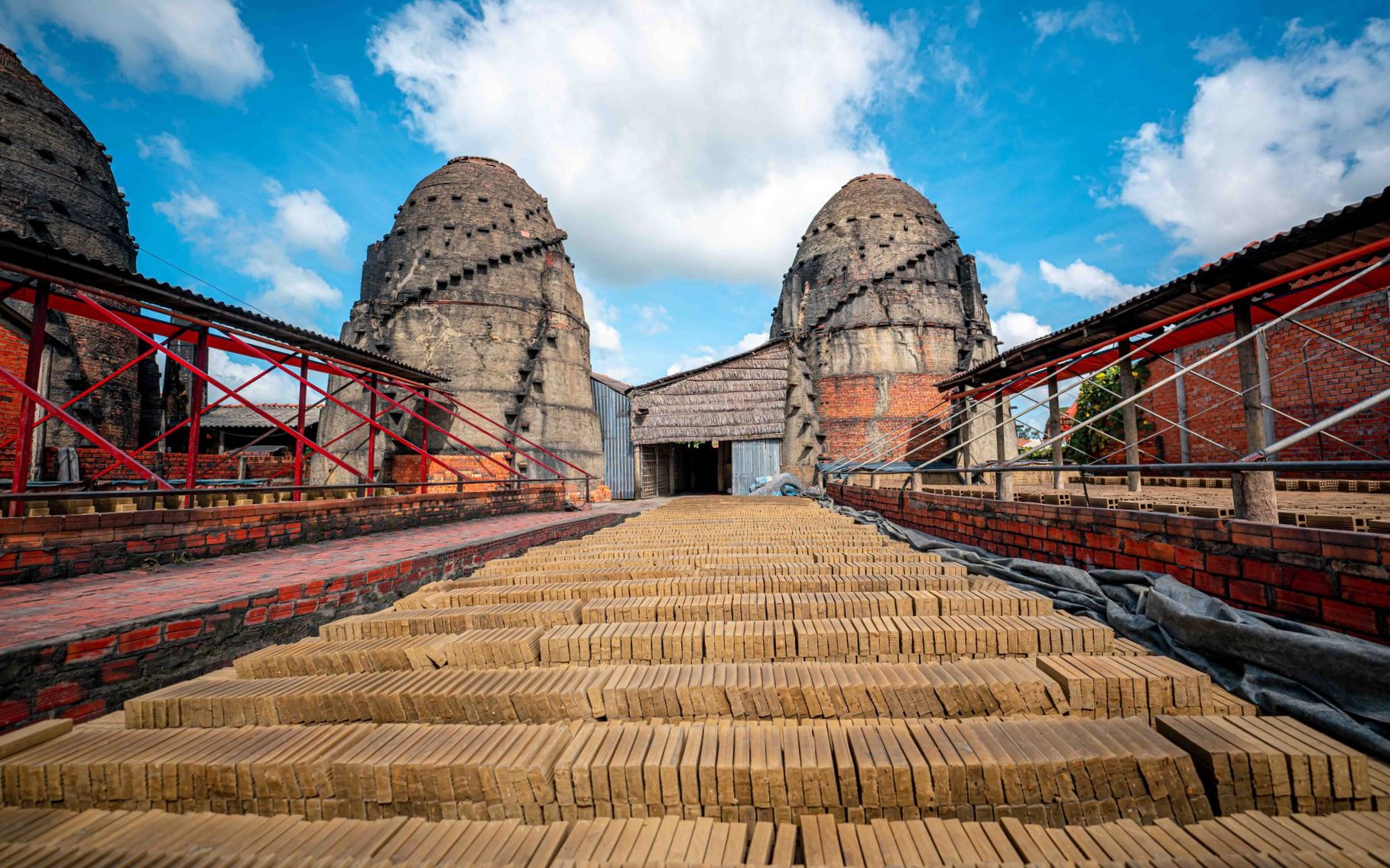 Khi du thuyền của chúng tôi đến Vương quốc đỏ, nơi bạn có thể nhìn thấy hàng trăm lò gạch ở cả hai bên kênh Thầy Cai, Mỹ An và Hòa Tịnh.