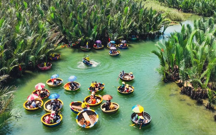 Đắm mình trong không gian xanh mát của rừng dừa Cẩm Thanh, du khách chèo thuyền thúng trên sóng, bắt cua, nặn lá dừa và thử sức mình với trò đua thuyền độc đáo. Khám phá tinh hoa của làng đá Non Nước 200 năm tuổi, thưởng thức ẩm thực địa phương đậm đà hương vị quê hương - một hành trình kết nối trọn vẹn thiên nhiên và văn hóa truyền thống.