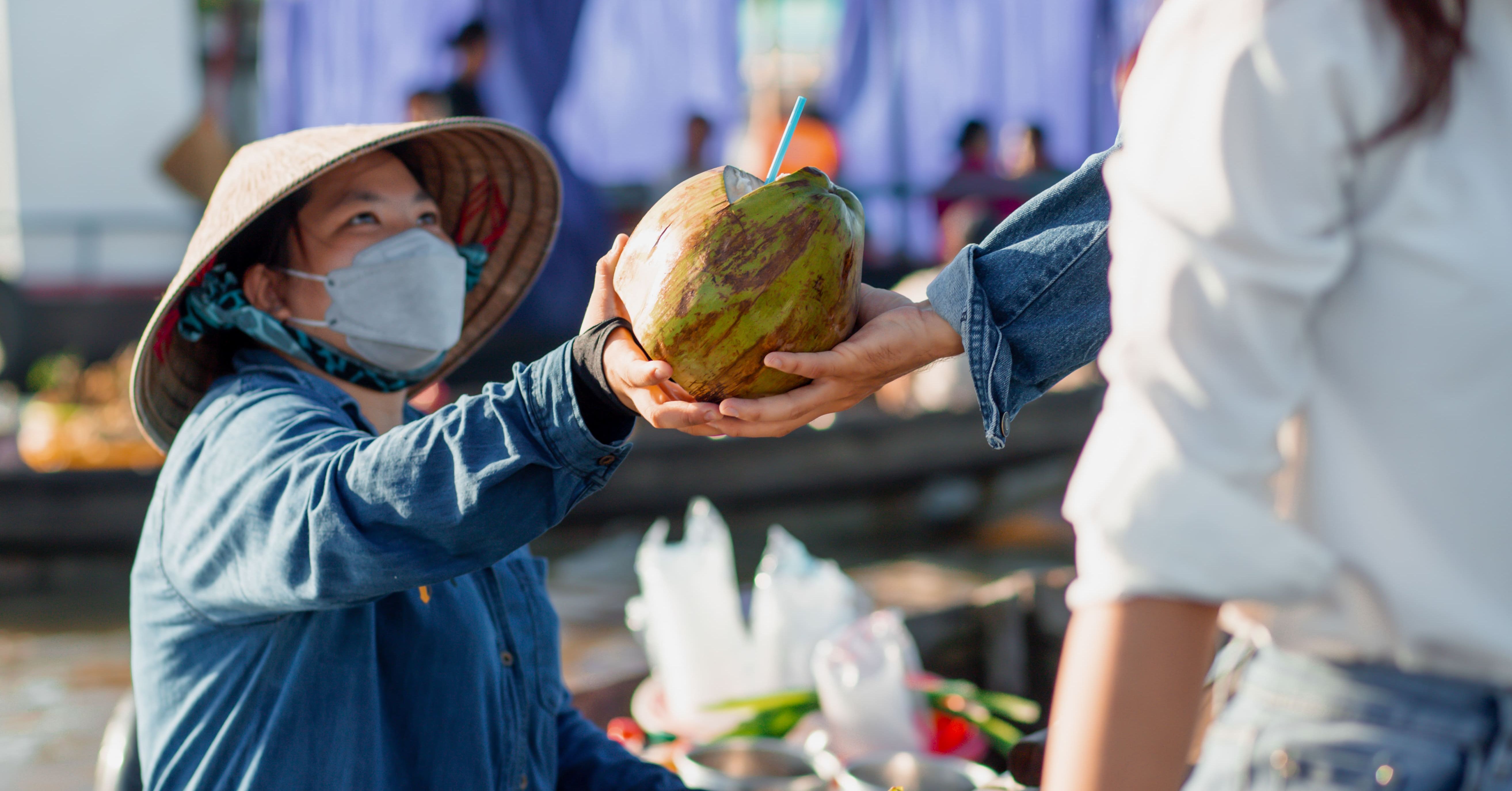 Thức dậy cùng mặt trời để khám phá khu chợ nổi nhộn nhịp, chứng kiến nghệ thuật làm bún gạo và dạo bước qua những vườn trái cây tươi tốt và trang trại ca cao.