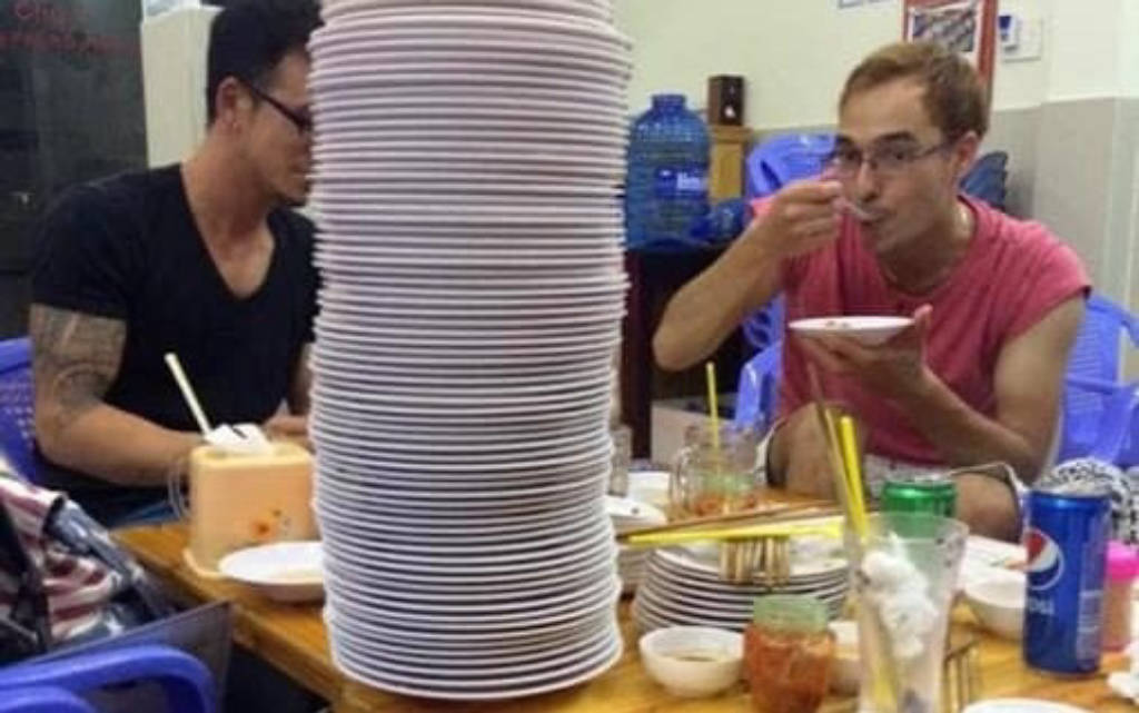 Tên bánh ướt chồng đĩa đã gây ra tò mò cho rất nhiều du khách lần đầu tiên thưởng thức. Đúng như tên gọi, bạn sẽ bất ngờ khi thấy nhân viên bê một chồng đĩa bánh ướt ra cho mỗi du khách khi gọi món. Mỗi đĩa nhỏ chỉ có một miếng bánh ướt vừa đủ cuốn cho một người ăn chính vì vậy mỗi lần bạn gọi nhân viên sẽ mang ra số đĩa nhiều hơn số lượng bạn gọi nhưng hãy yên tâm là bạn ăn bao nhiêu sẽ trả tiền bấy nhiêu, bạn chỉ cần xếp chồng đĩa sang 1 bên, chủ quán sẽ tính tiền cho bạn. Nhiều người nói món này tiền thân xuất phát từ món nem nướng Nha Trang, sau đó được người trên Buôn Mê Thuột biến tấu thành nhưng món này trở thành món ăn vặt rất nổi tiếng ở Vũng Tàu.