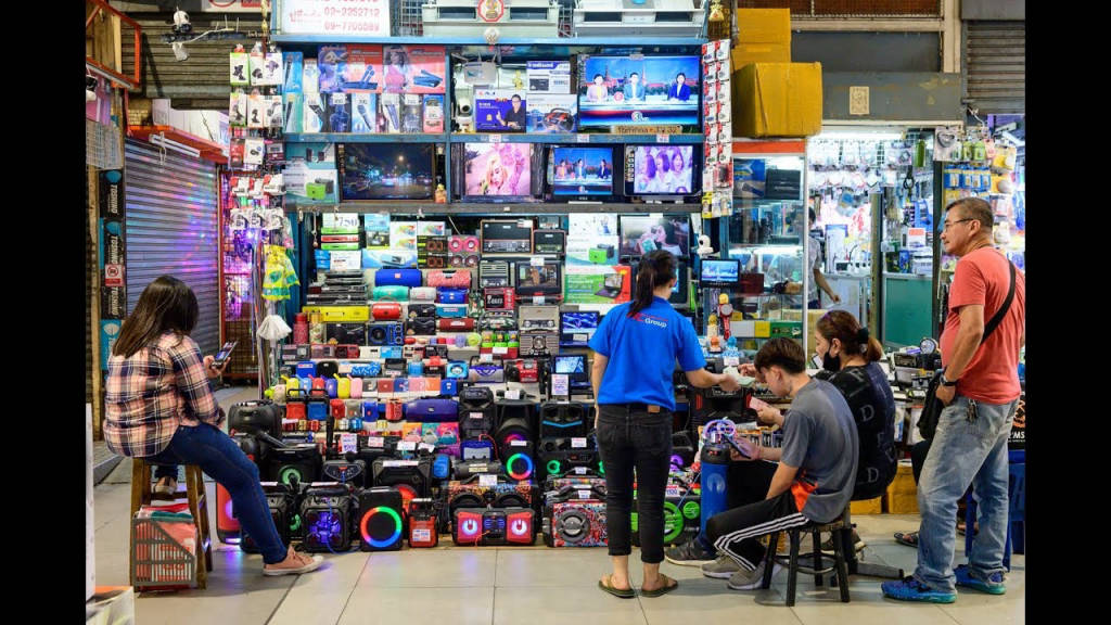 Chợ Khlong Thom bán tất cả mọi thứ bao gồm quần áo, đồ điện tử từ Trung Quốc, DVD lậu, phụ tùng và phụ kiện ô tô, xe máy, xe đạp, radio, bảng hiệu neon kĩ thuật số, nhạc cụ, công cụ lao động, đồ cơ khí, máy chơi game, dàn âm thanh, phụ kiện điện thoại, kính râm và bất kì thứ gì mà bạn có thể nghĩ ra để mua.