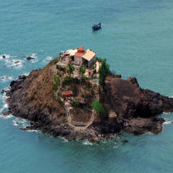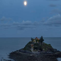 Ngôi miếu Hòn Bà trước đây được người dân lập để thờ Thủy Long thần nữ, người luôn bảo hộ phù trợ những người dân đi biển. Về sau đến năm 1971, ngôi miếu được tu sửa lại do một người tên Thanh Phong, gốc Trà Vinh đứng ra quyên góp tiền để trùng tu, sửa lại miếu. Sau khi trải qua nhiều lần sửa chữa, miếu Bà đã trở nên đẹp hơn và là địa điểm thu hút đông khách du lịch đến hành hương. Khi bạn qua miếu nhớ phải nắm rõ lịch nước triều lên và chiều xuống để qua đảo.