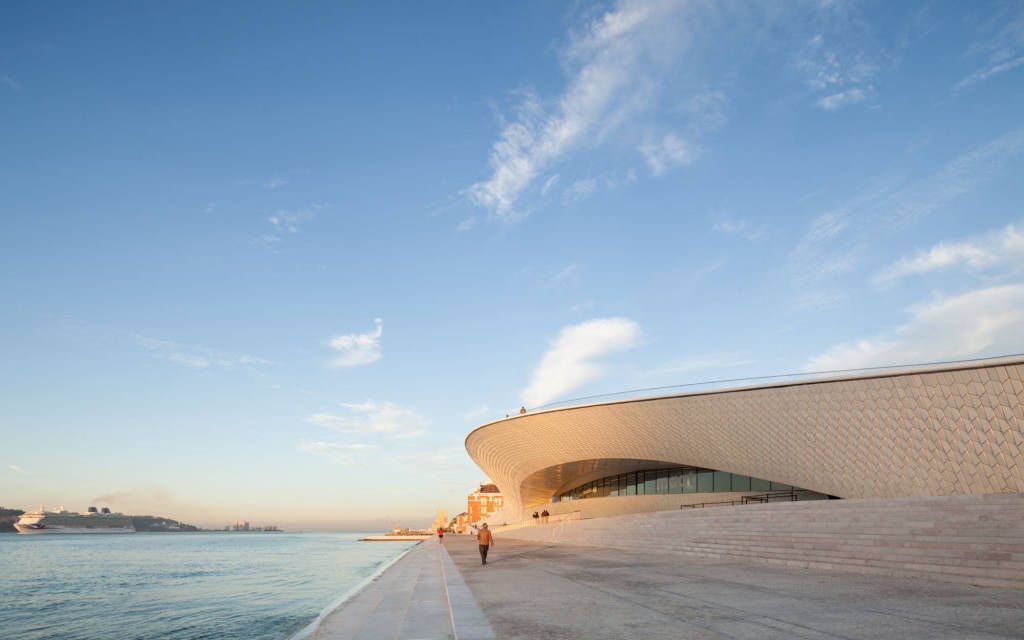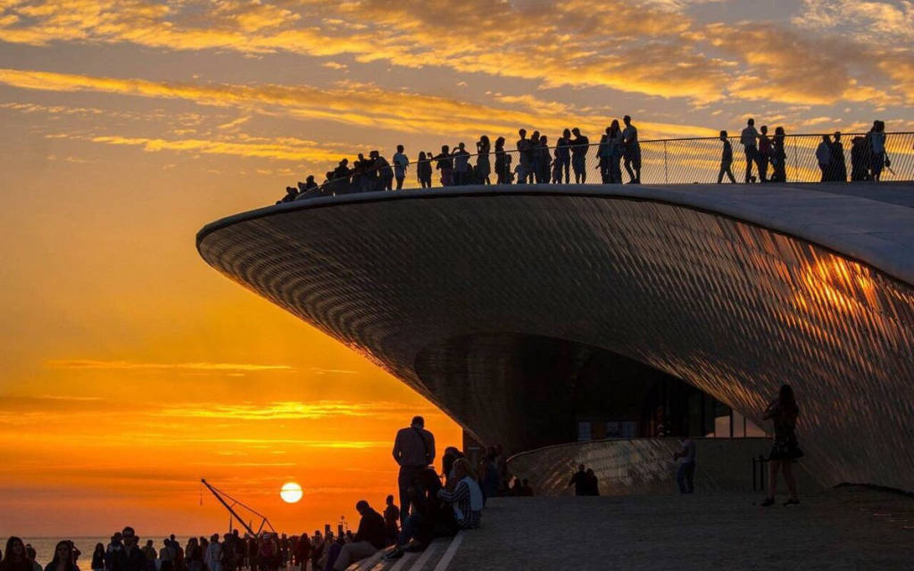 The museum's contemporary structure, characterized by undulating curves and a sleek facade, immediately captures the attention of visitors. As one approaches, the integration of modern design with the historic surroundings becomes evident, creating a dialogue between the past and the present. MAAT's architecture, both bold and harmonious, serves as an invitation to explore the cutting-edge exhibitions housed within.