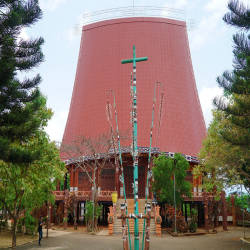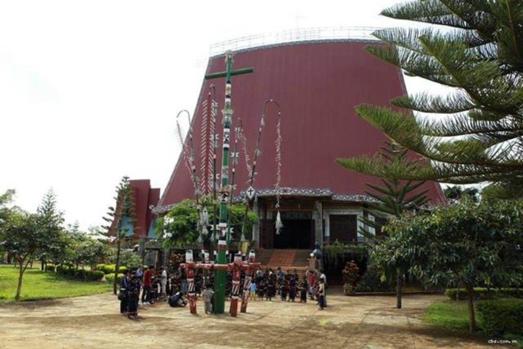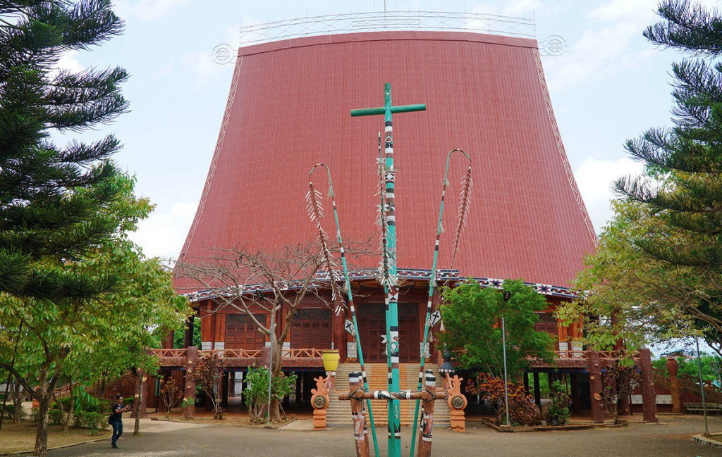 Pleichuet Church was built in 2005, besides the familiar name Pleichuet church, this place is also known as Pleichuet mission center or Pleiku Rong house church. Pleichuet Church was built according to the model of the Rong house of the Jrai people, managed and cared for by the Redemptorist Fathers. Pleichuet Church is designed in the style of villages in the north of the Central Highlands, especially in Gia Lai and Kon Tum provinces. When coming to the church, visitors will feel surprised and will completely change the concept of ordinary church architecture because it possesses architectural lines with bold local identity.